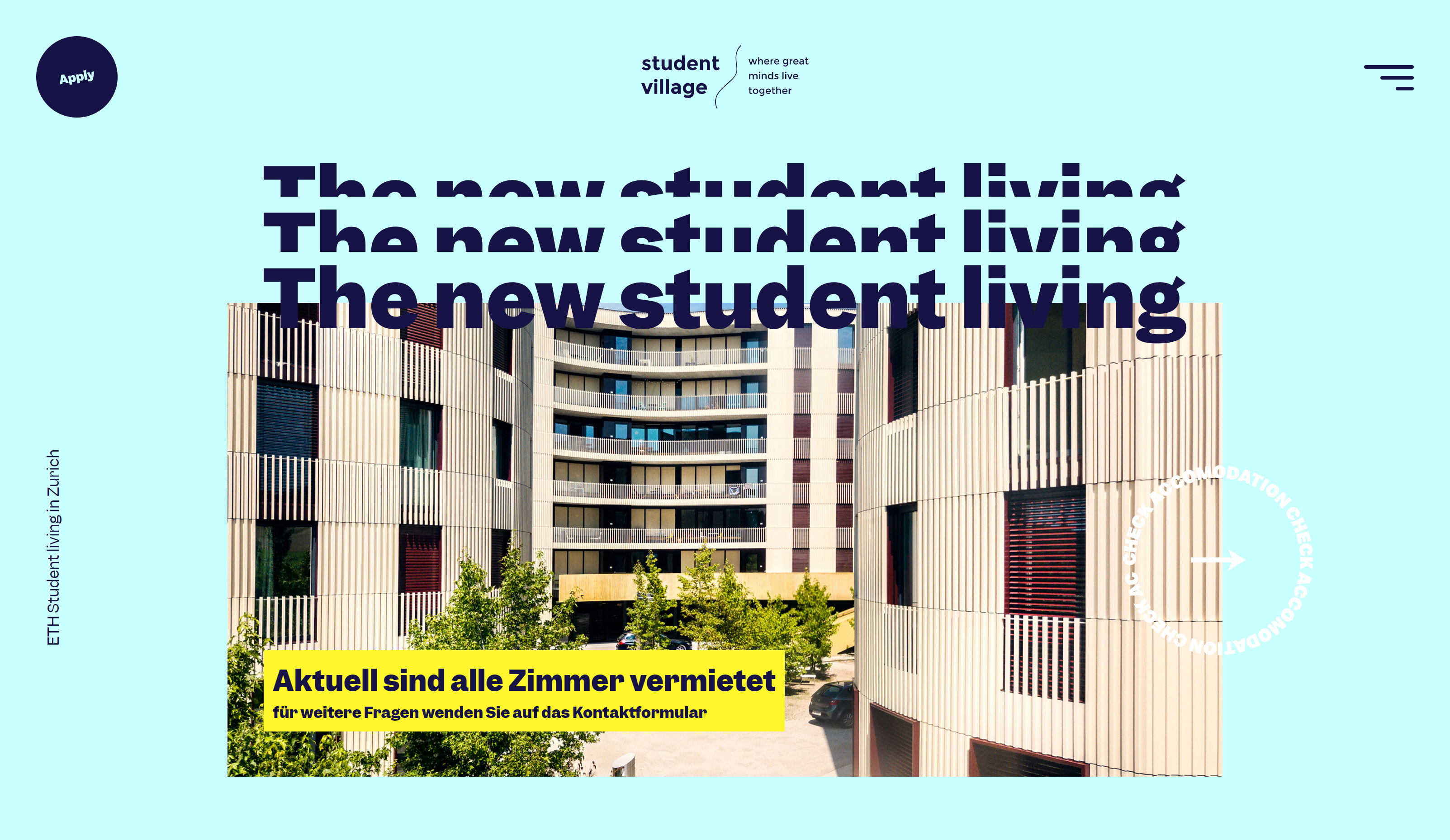 The Student Village is made up of 3 Buildings with 500 student rooms and apartments at the Zurich University. We created a Brand look and feel for the project and turned it into an online tool, not only for the students, but for the managers as well.